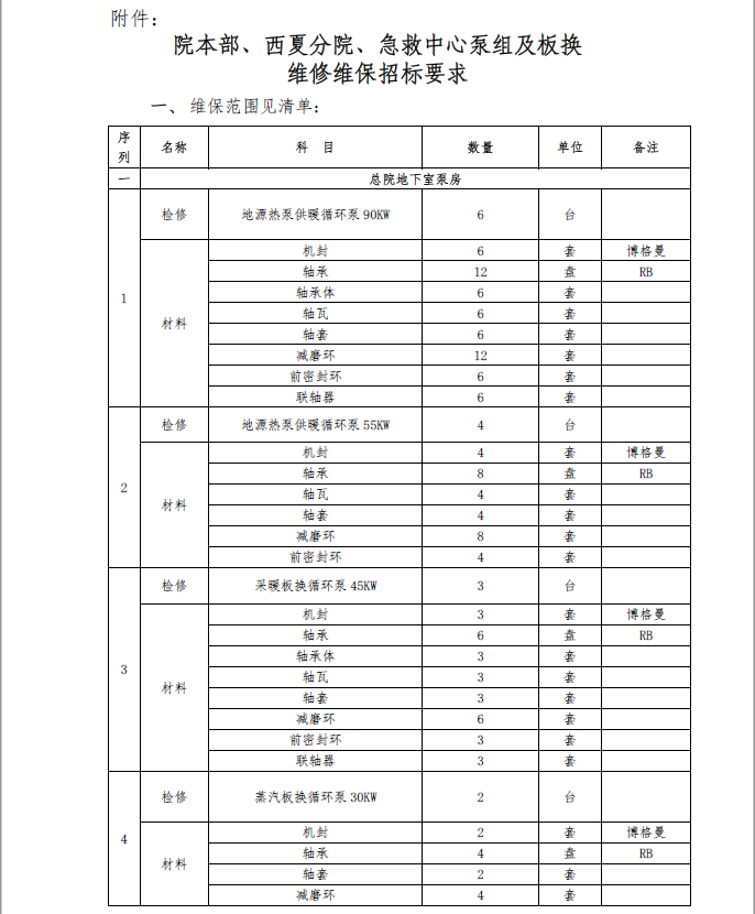 宁夏回族自治区人民医院院本部、西夏分院、急救中心主要泵组及板换维修维保项目(服务期:三年)(具体内容见附件)。