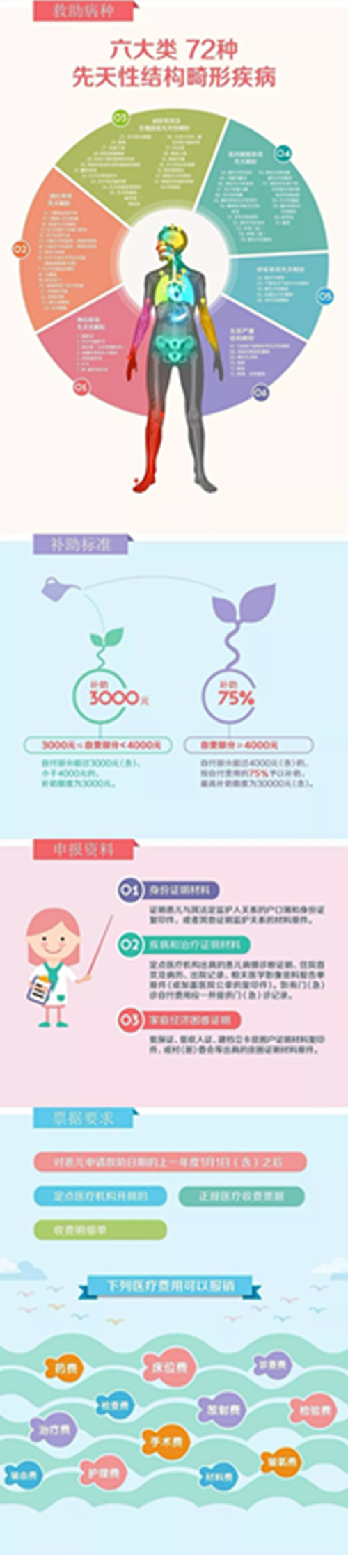 (二)减轻贫困患儿家庭医疗负担,促进先天性结构畸形早诊断、早治疗,减少先天性结构畸形所致残疾。